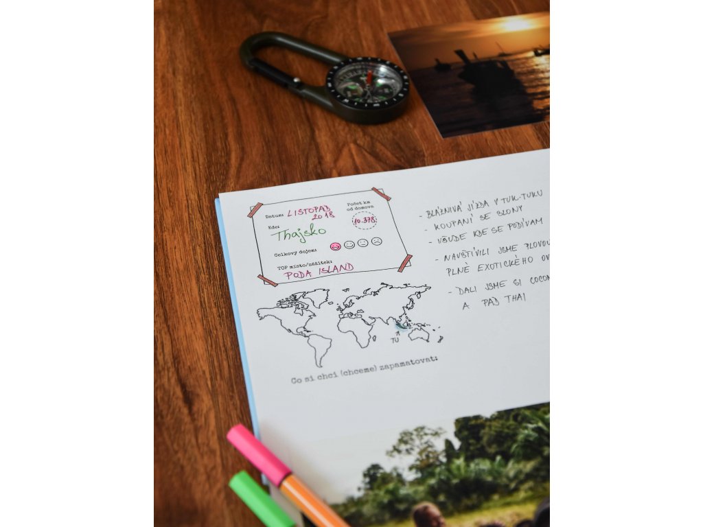 Napíšte, kam idete. Naplánujte si baliaci zoznam. Zaznamenajte si, čo ste zažili na ceste tam i späť. Zapíšte si nezabudnuteľné okamihy. Vložte fotografie. Ohodnoťte každý deň a zakrúžkujte svoju náladu!