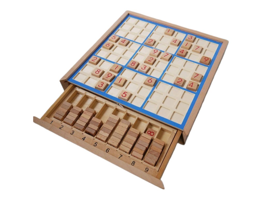 Dosková hra sudoku je klasická logická hra, ktorá zabaví celú rodinu! Táto kompletná sada má všetko, čo k hre potrebujete, a obsahuje celú brožúru hádaniek, drevené doštičky s číslami a hernú dosku s úložným priestorom. Táto zábavná hra s číslami, ktorej počiatky siahajú až do konca roku 1700, podporuje zručnosti kritického myslenia a zabaví sa u nej deti aj dospelí.