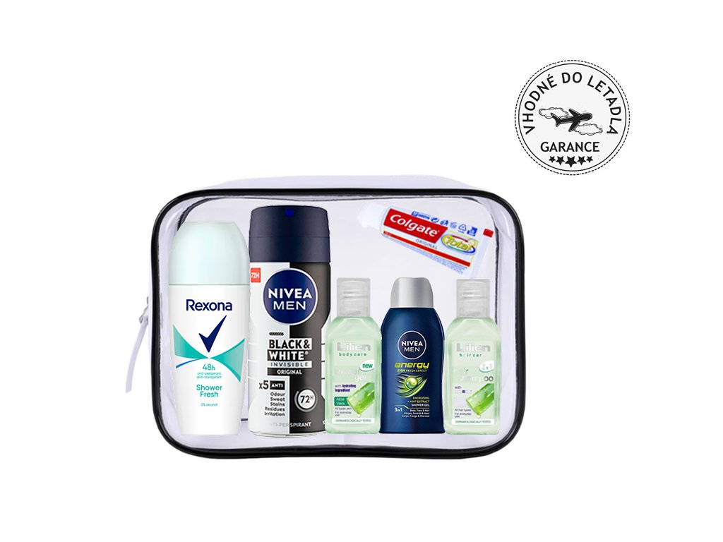 Kozmetická sada ideálna pre pár, ktorý rád cestuje a spoločne rád objavuje nové kúty sveta. K tomu ale potrebujú aspoň základnú kozmetiku. Sada obsahuje: pre pánov dezodorant a sprchový gél so šampónom 3v1. Dámy v sade nájdu antiperspirant, sprchový gél a šampón na vlasy značky Lilien. Obaja potom spoločne ocenia a využijú zubnú pastu Colgate.