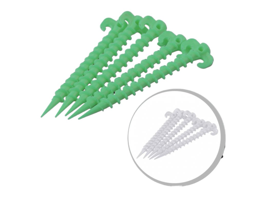 Kolíky na stan sú navrhnuté v špirálovom tvare, čo uľahčuje ich použitie a demontáž. Pomocou sily alebo kladiva zaklopte kolík do zeme a potom ním otočte jedným smerom. Kolíky môžete použiť nielen pre stan v prírode, ale aj na pláž, pre plachty, na záhradu alebo pre altánky.