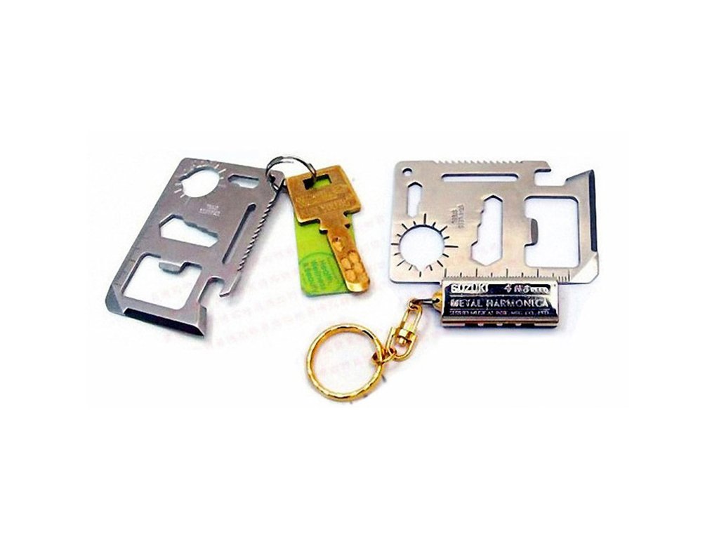Multifunkčná karta prežitia s 11 užitočnými nástrojmi v jednej kovovej karte veľkosti kreditnej karty plní vďaka svojej rozmanitosti požiadavky aj tých najnáročnejších cestovateľov.