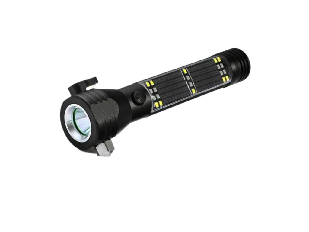 Baterka je vhodný darček pre vodičov, ale aj pre cyklistov, pre trampy a v neposlednom rade do každej domácnosti. Môžete svietiť klasickým bielym svetlom, ktoré má dve intenzity alebo bliká. Zároveň svieti aj bočný panel, pracovným bielym svetlom a výstražným červeným svetlom, taktiež s možnosťou prepnutia na blikanie. Hlava svietidla obsahuje magnet, kladivko a nožík, ktorý dokáže prerezať aj bezpečnostný pás v aute. Na konci svetla sa nachádza kompas, pod ktorým sú nabíjacie porty pre USB a mobilný telefón. Baterku je možné nabíjať USB káblom alebo slnečným žiarením.