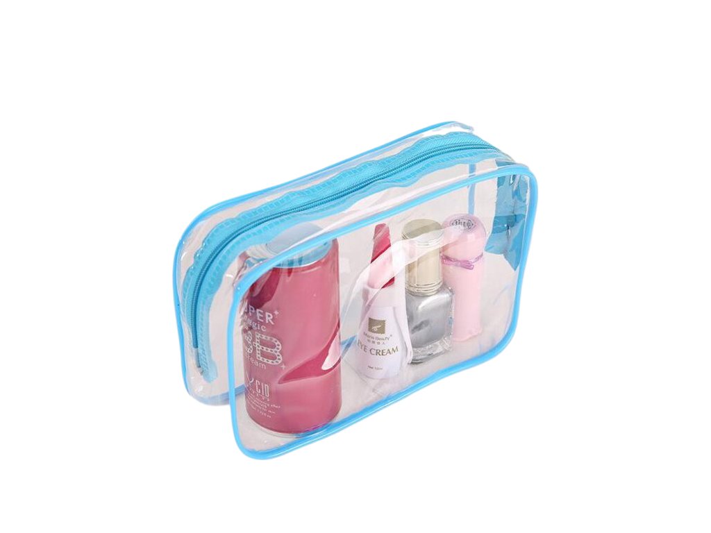 Priehľadná kozmetická taštička v modrom a čiernom farebnom spracovaní svojou univerzálnosťou nadchne všetkých cestovateľov. Svojim zipsom vôbec nebráni vloženiu akýchkoľvek kozmetických prípravkov.